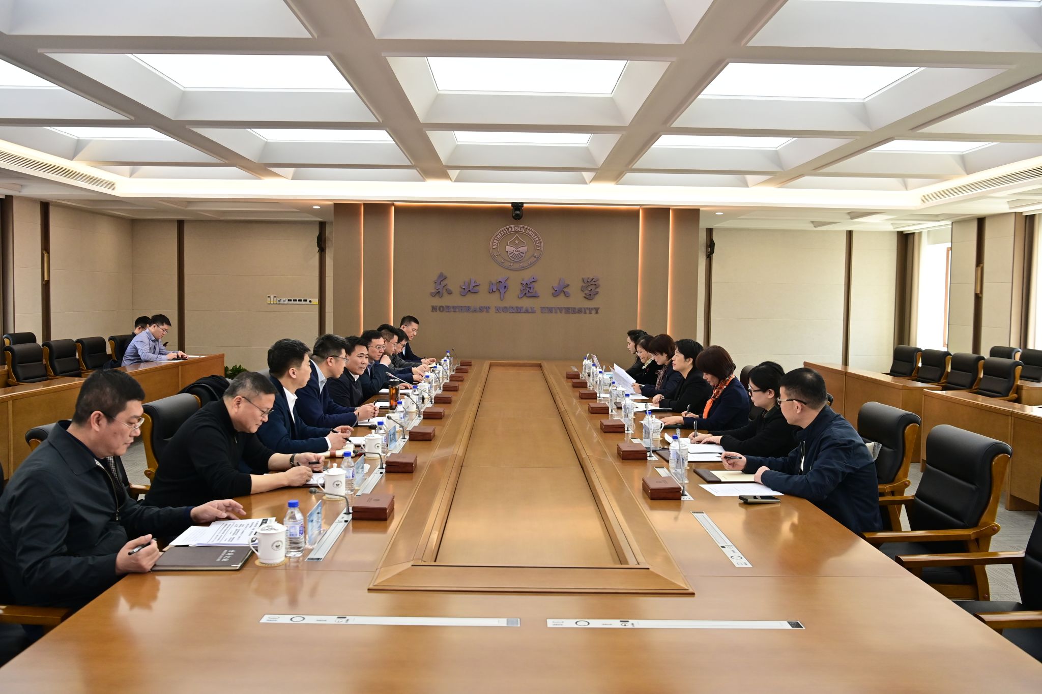 3月4日,中国矿业大学党委书记刘波、校长赵宏伟、副校长王忠宾一行来校调研。我校党委书记李忠军、党委副书记兼副校长常青、副校长邬志辉出席座谈会。 李忠军对中国矿业大学一行表示欢迎,重点介绍了东北师范大学的红色基因、学科特色及