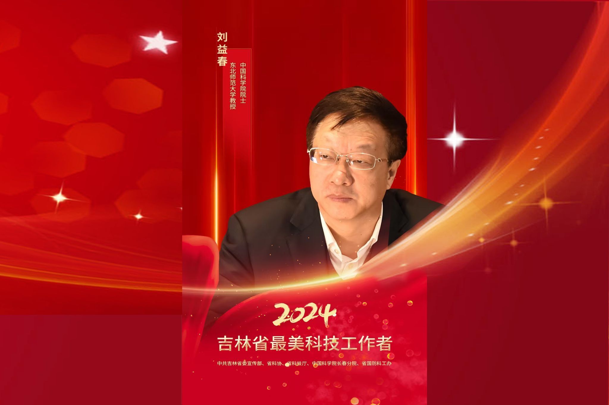 12月31日,省委宣传部、省科协、省科技厅、中国科学院长春分院、省国防科工办联合发文,评选出10名同志为2024年“吉林省最美科技工作者”。中国科学院院士、我校紫外光发射材料与技术教育部重点实验室主任、刘益春教授获2024年“吉林省最美